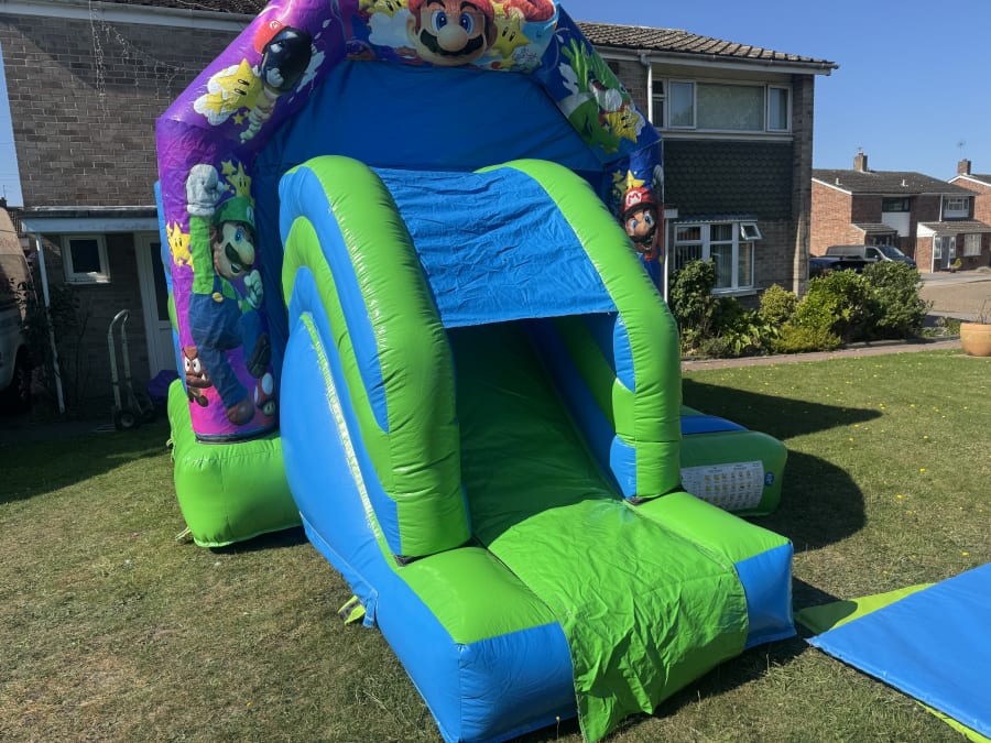 New design Mario slide gloss finish great fun for kids and better slide and is kids only castle.all our castles its free delivery up to 10 miles of lowestoft above that its a £20+ for delivery depends on area
