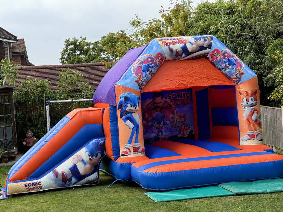 Sonic the hedgehog castle with slide kids only.all our castles its free delivery up to 10 miles of lowestoft above that its a £20+ for delivery depends on area